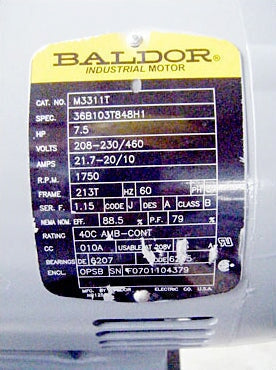 - If Multiple Motors, Motor Descriptions vs specs: (1) Baldor Electric, (1) 3 hp Louis Allis Electric, and (1) 1.5 hp Lafert Electric