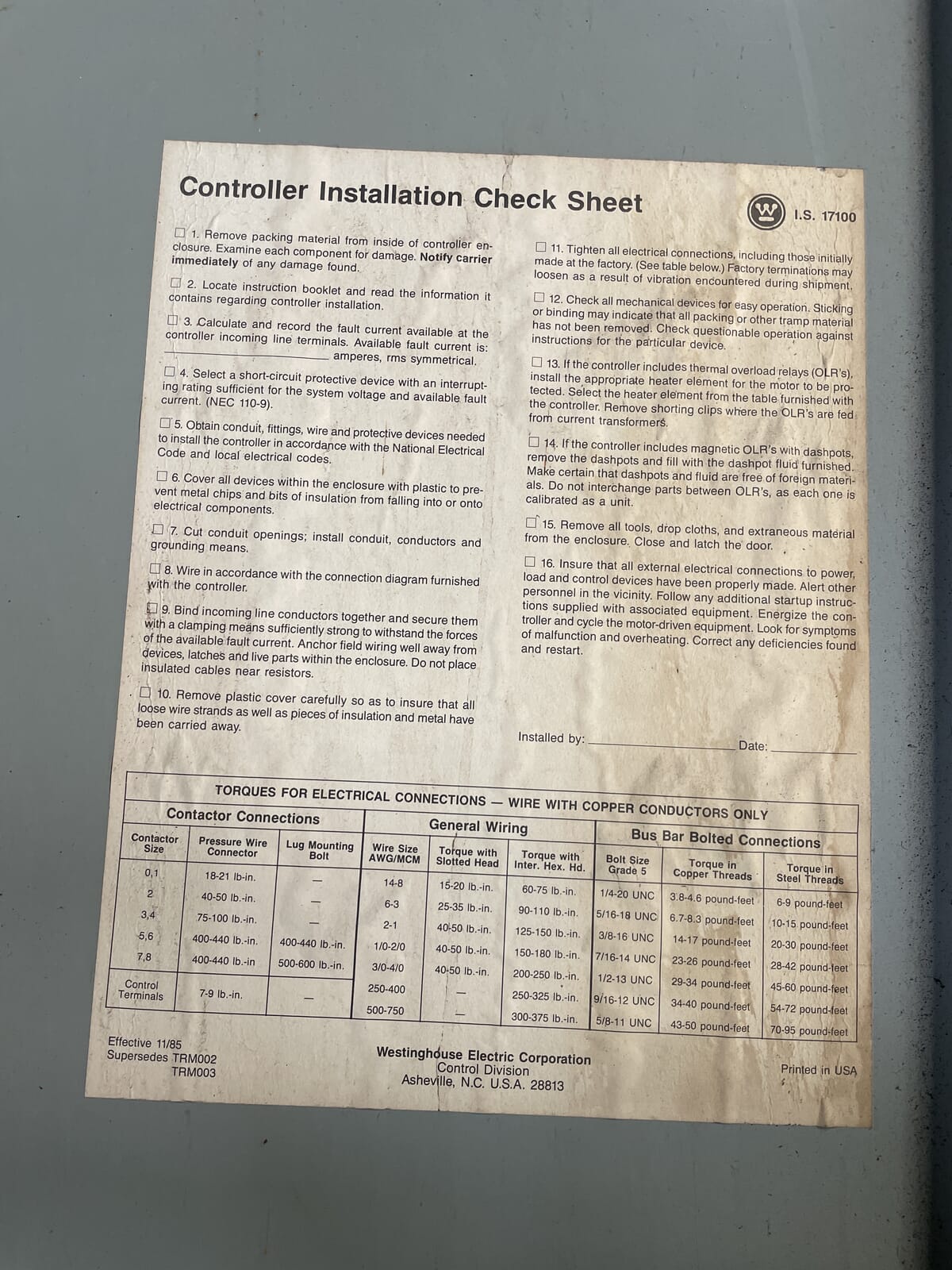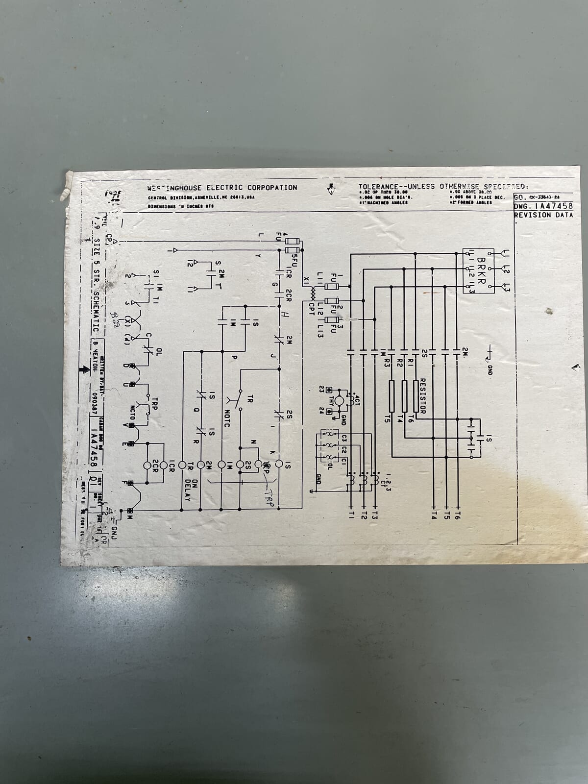 Westinghouse Reduced Voltage Motor Control. Power supply: 200 HP, 480V, 60 Hz. DiagRam Industries Drawing: 1A47458. Manufacture Date: 09/87.