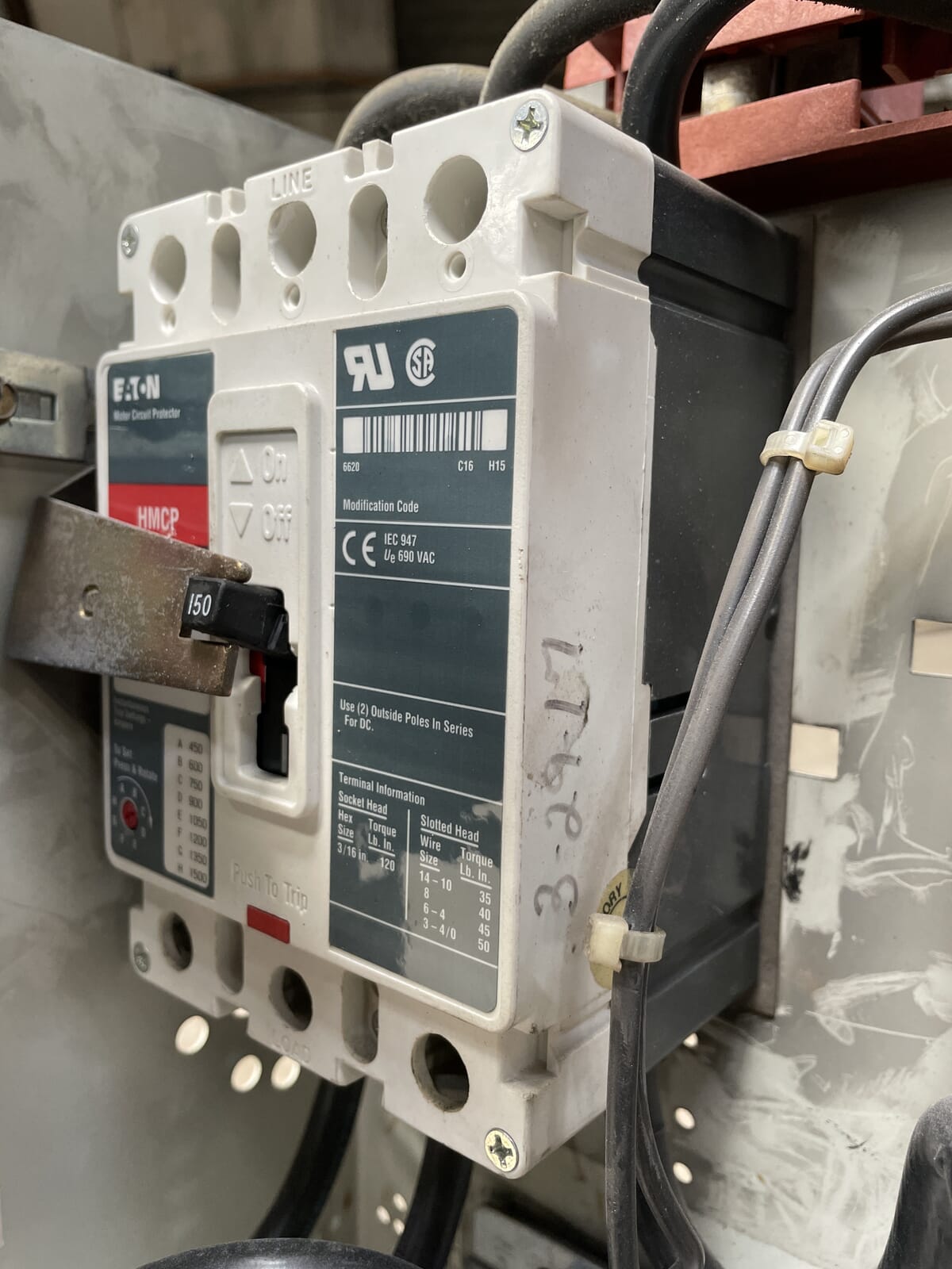 Westinghouse size 4 motor starter with 150 amp motor circuit protector. G.O. No: CH33543. Power Service: 480 Volts, 3 Ph, 3 W, 60 Hz. Max HP: 100. Control: 120 Volts. Wiring DiagRam Industries: WD-3. Eaton 150 Amps Motor Circuit Proctor - 150 AMPS, 3 Poles, Cat No: HMCP150T4C.