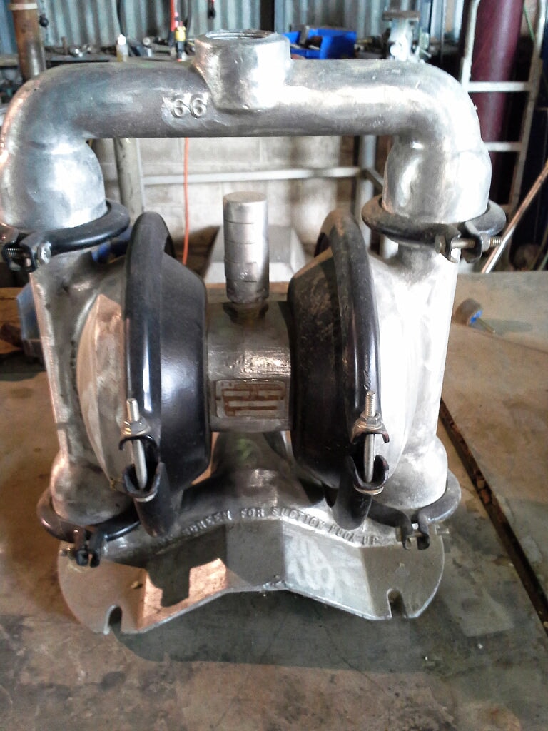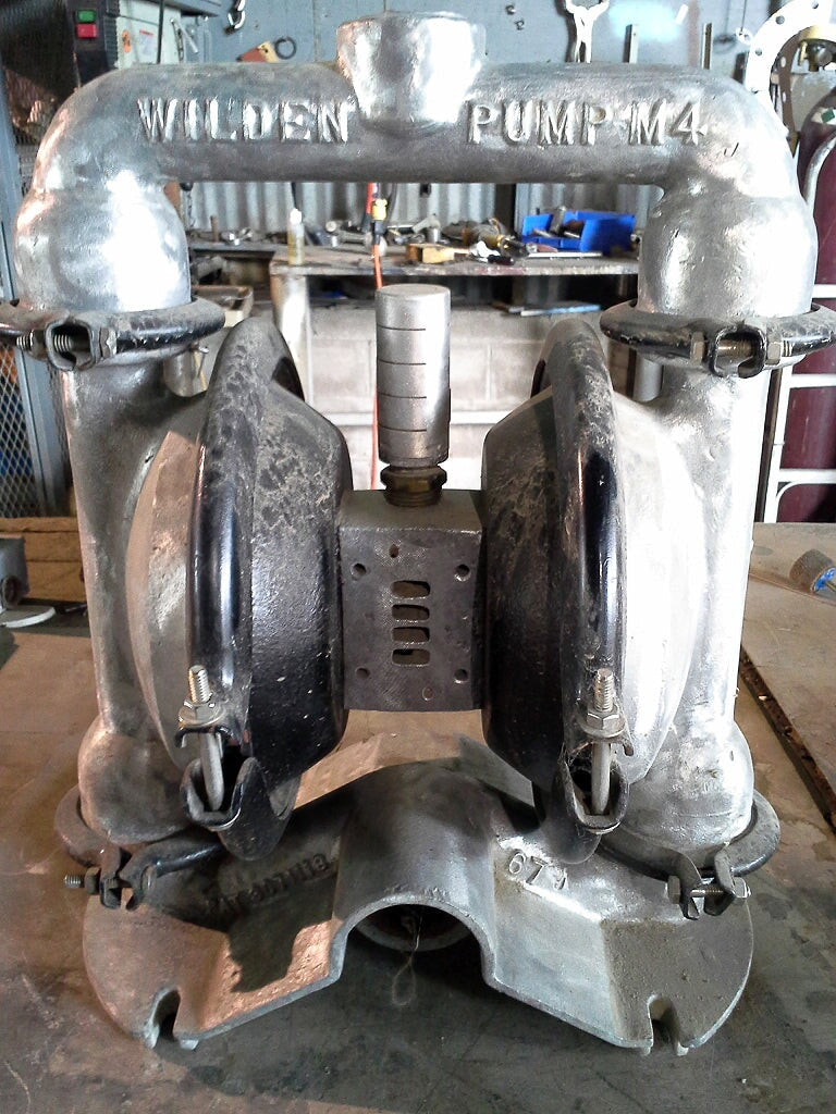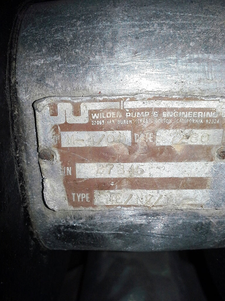 Wilden Double Diaphragm Pump. Model: M4. S/N: 27345. Overall dimensions: 1 ft. 3 in. L x 1 ft. W x 1 ft. 6 in. H.