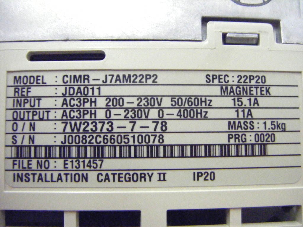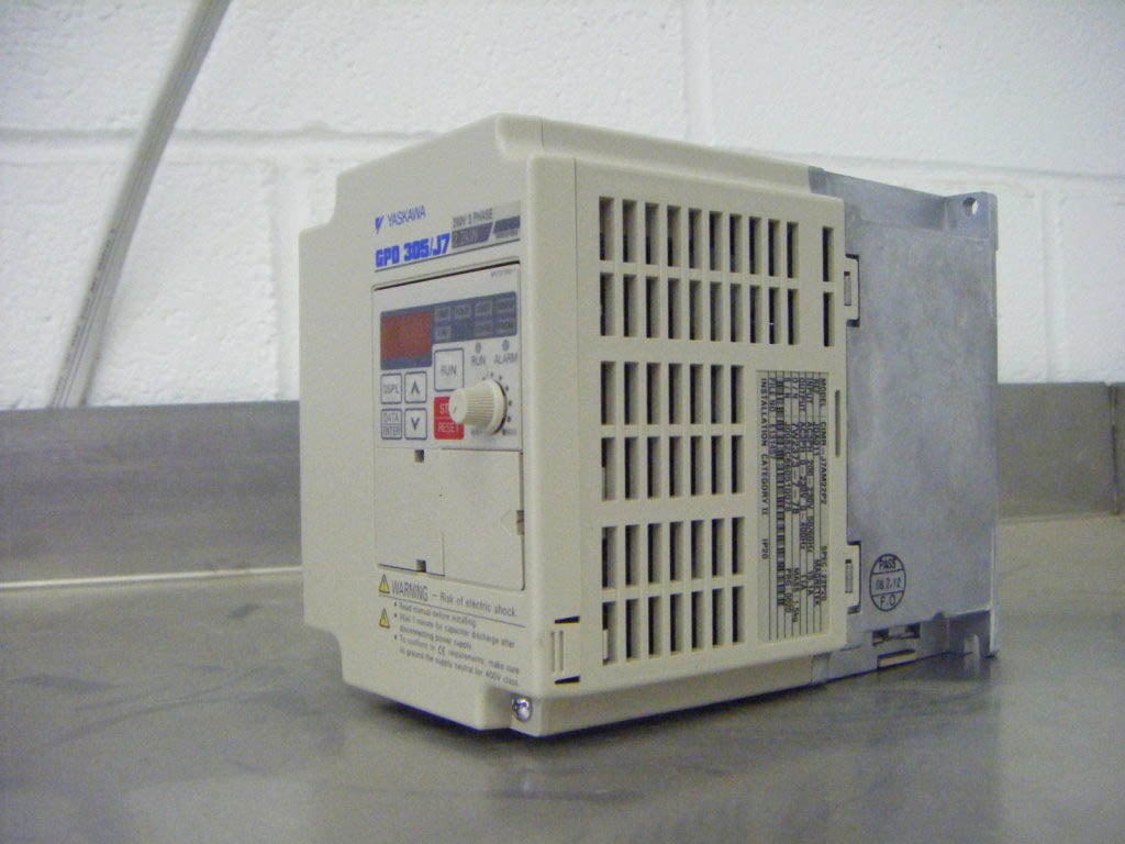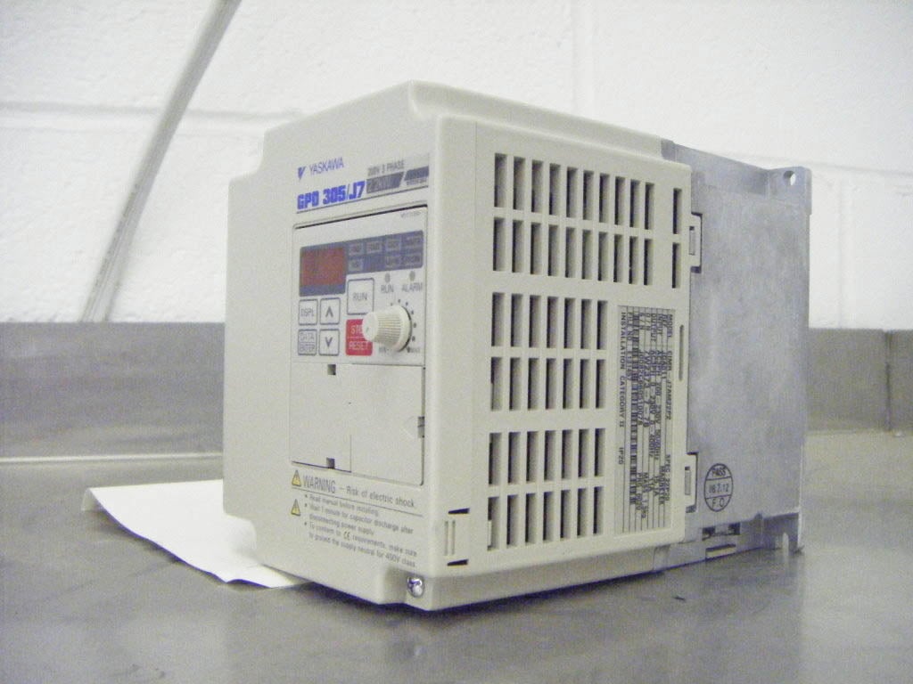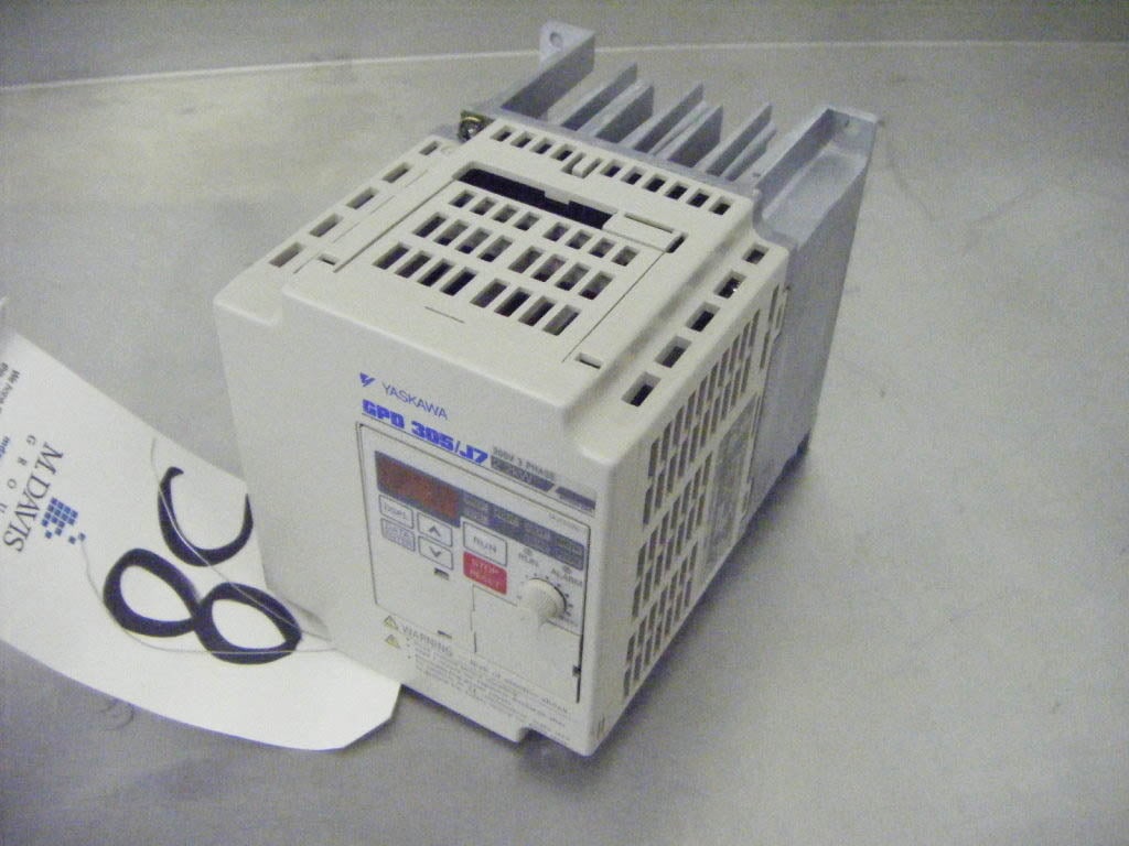 Yaskawa 3 HP Variable Speed Controller. Input: AC 3 phase 230V 60 Hz 15.1 A. Output: AC 3 phase 0-230V 0-400 Hz 11A. Weight: 3.3 lbs. Heat Loss: 94.8 W. Mounting Hole Width: 3-3/4 in. Mounting Hole Height: 4-3/4 in. Overall dimensions: 6-1/8 in. L x 4-1/4 in. W x 5 in. H.