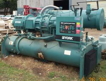 1995 York Codepak Water Cooled Chiller. Model YSCBCBS2-CHB, S/N SADM-534310. Compressor: 300 ton/screw. Refrigerant: R22. Microprocessor. Rated at 278 tons at 57 °F entering water; 45 °F leaving water; 550 gpm. Will do 150 tons at 20 °F with glycol.