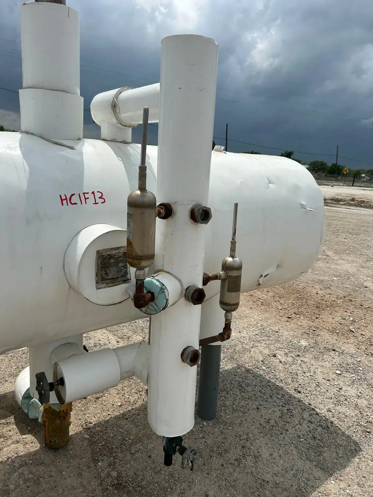 Certified by York Refrigeration Horizontal Ammonia Accumulator. National Board/Serial No: 159459. Model: HSDD-30-113. MAWP: 250 PSI @ 250 F. MDMT: -20 F @ 250 PSI. MAEWP: 15 PSI @ 250 F. Year Built: 2010. Vessel Dimensions: 30"OD X 113"L. Estimated Capacity: 410 Gallons.