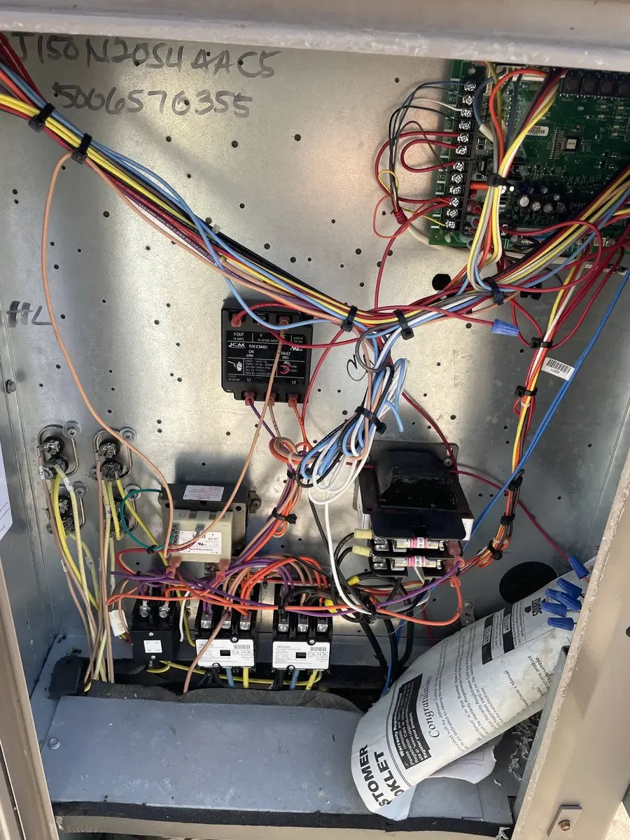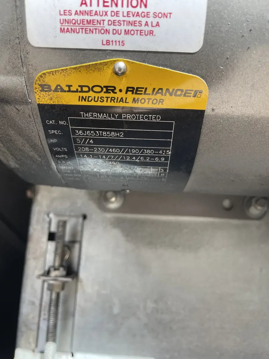 York Predator Air Cooling & Heating Condensing Unit. Model: ZJ150N20S4AAC5A. Serial No: N1A1672157. Total Tonnage: 12.5. Unit Voltage: 460/3/60. Minimum Circuit Ampacity: 38.3. Maximum Fuse Size(Time Delay): 50. Max Circuit Breaker Size(HACR Type): 50. Minimum Test Pressure Charge: High Side: 445 PSIG, Low Side: 235 PSIG. Temperature Rise Degree(F): 25-55. Gas Input BTU/HR: 240,000. Minimum Input BTU/HR: 144,000. (2) Scroll Compressors: Model: HLH068T4LC6, 460/3/60, LR: 87.0A.(1) Belt Drive Blower Motor: 3/4 HP, Volts: 208-230/460, RPM: 1750.
