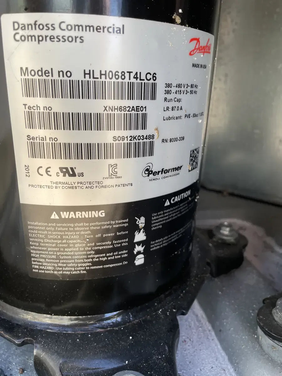 - Compressor Descriptions: (2) Danfoss Scroll Compressor: Model: HLH068T4LC6, Voltage Power: 480v/3Ph/60Hz, LRA:87.0.